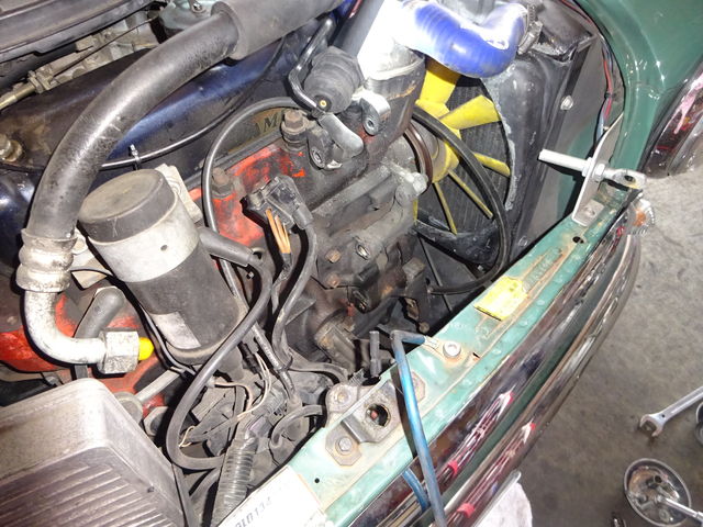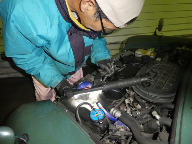 思いのほか手強いが患部が外れたエンジンルームの前部を上からのぞきます