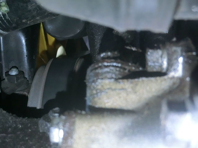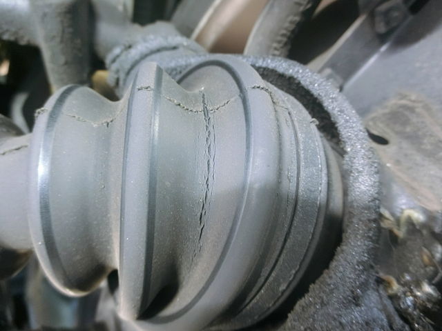 右のドライブシャフトアウターブーツに深めのクラックがあります。