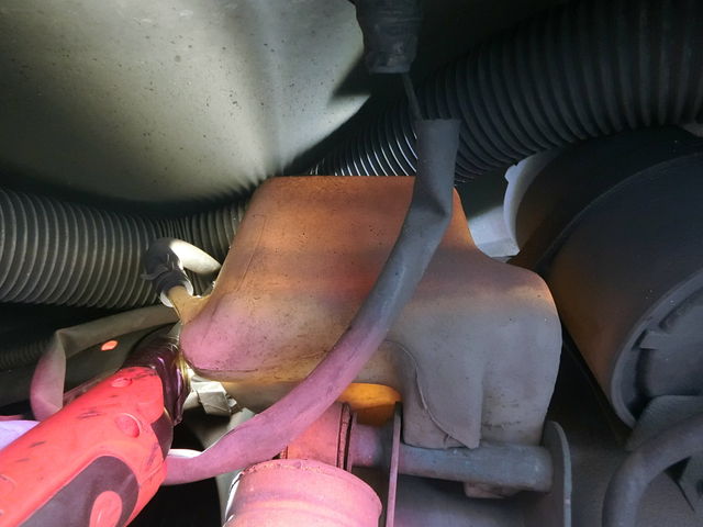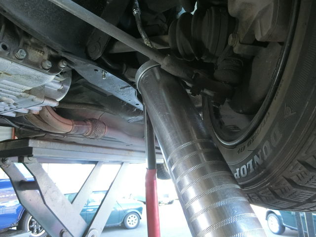 アンダーガードのボルトが抜けて結束バンドで留まっていました。