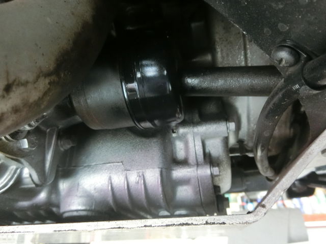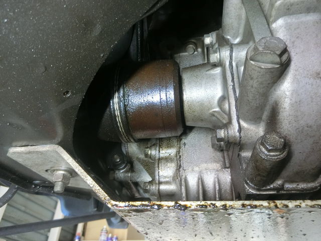 タイミングカバー周辺にも少しオイル滲みがあります。