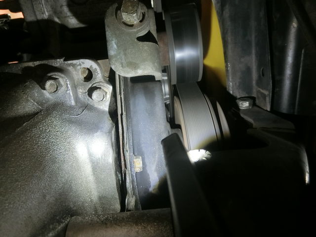 この場所に伝って漏れてくるのはウォーターポンプからの漏れで