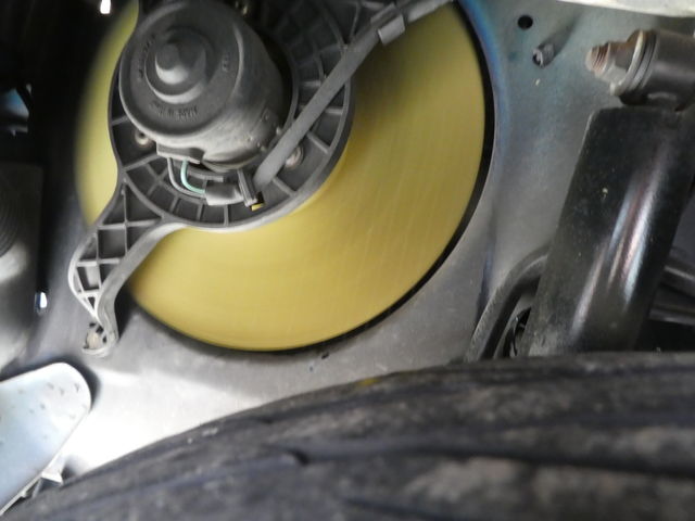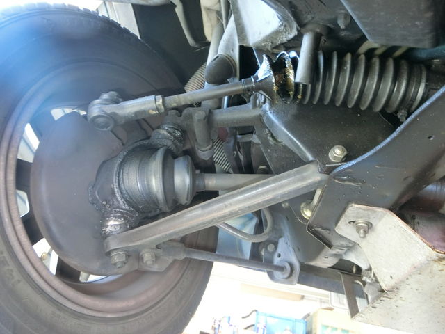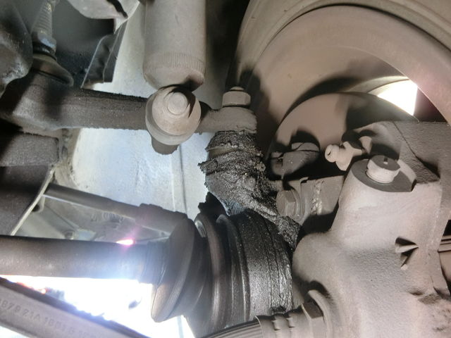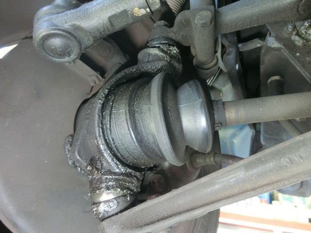 ドライブシャフトのアウターブーツからグリスが飛び散っています。