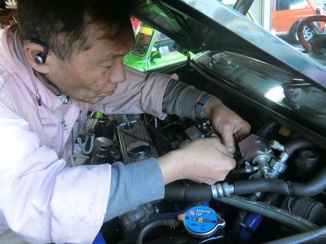隣のワークスATはたつろうメカがロールセンターアダプターを取り付け中