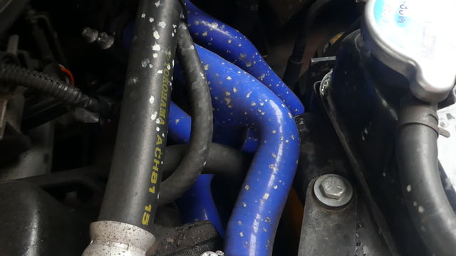 ラジエターホースに飛び散ってたクーラントは