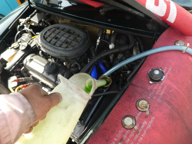 ラジエターフラッシュ入れてエンジン始動で洗浄開始