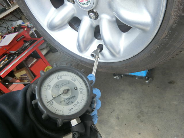 こちらのタイヤは車検工場へ行っていないので空気圧調整しておきます。