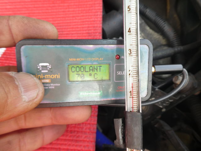 エンジン側の水温センサーは70℃まで上昇してますが