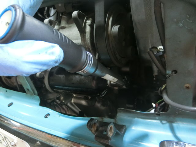スペシャルツールを使ってパッキンを溝の中へ押し込みます。