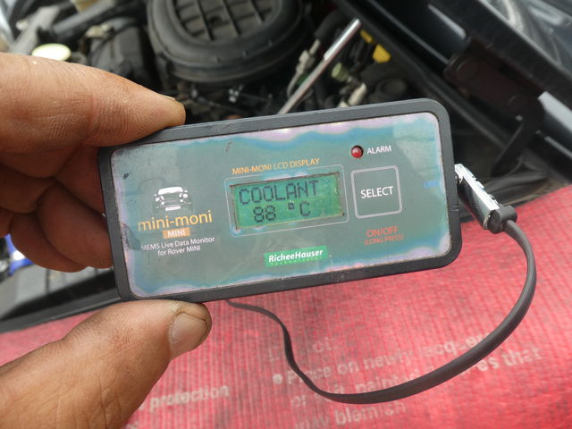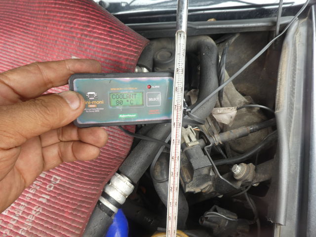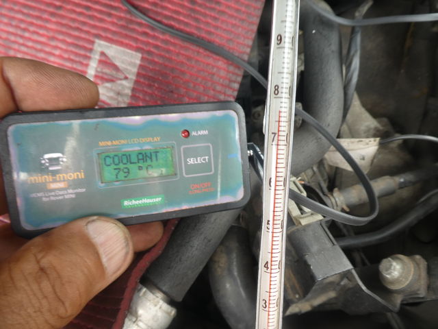 エンジン側の水温は79℃に下がり、ラジエターは77℃まで上昇しました