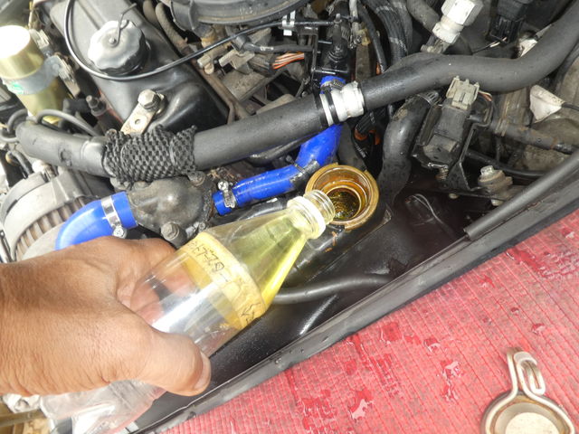ラジエターフラッシュ入れてエンジン始動で洗浄開始