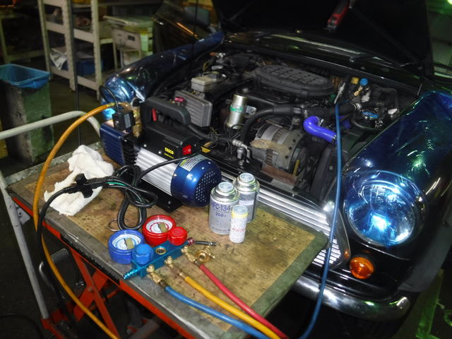 ACガスも全部抜けちゃったので真空引いてからガス充填です。
