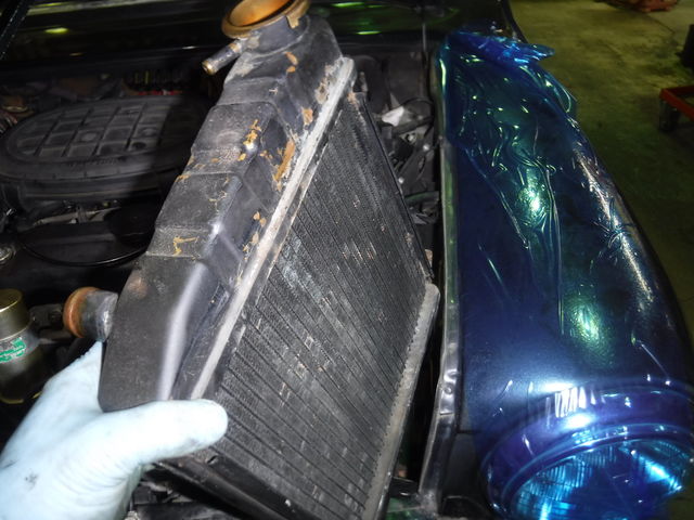 どうにか頑張ってみましたがどうにもならずラジエーター外します。