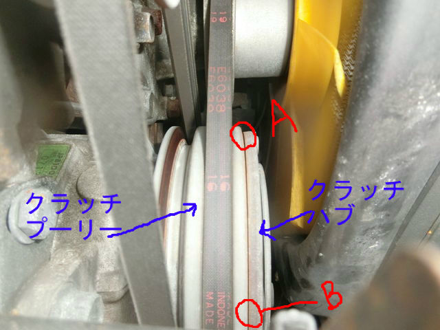 コンプレッサーが作動していない時もハブとプーリーが