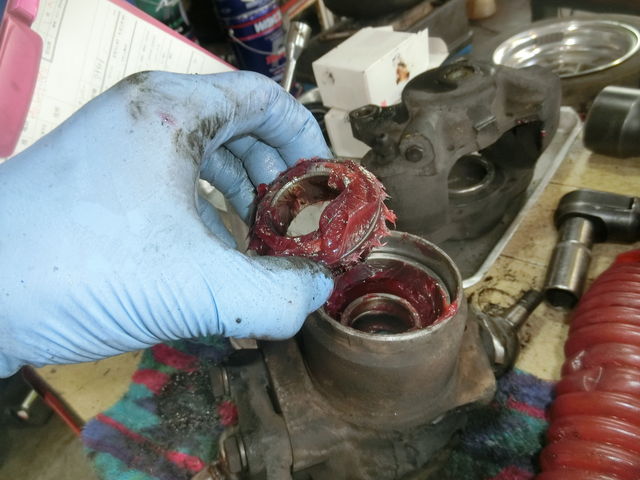 WAKO'Sの赤いグリスをベアリングになじませてから取り付けへ