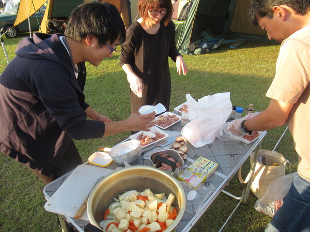 村長兼料理長の到着がまだなので富士のミニfesでもお世話になったISKさん筆頭にお料理出来る人達が立ち上がる♪