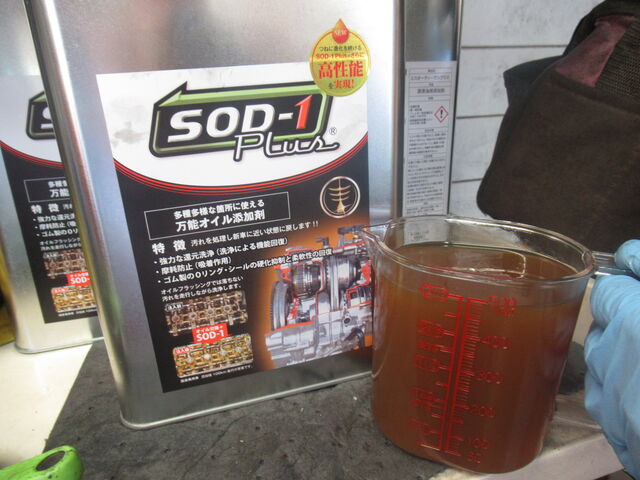 現在の粘度はブレンドで10W40くらい・・・ コンバーターに3リットル残ってるので