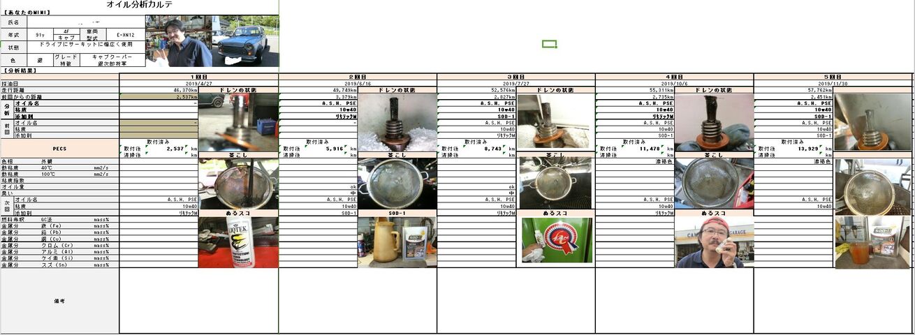 エンジンオイルは、交換時期までに少し早いからか、量と色、異常あり