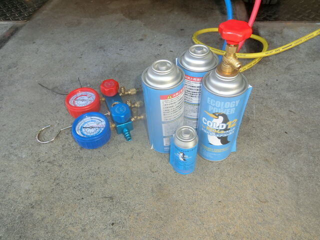 真空引きを行い、コンプレサーオイルガスを入れてから、ガスを