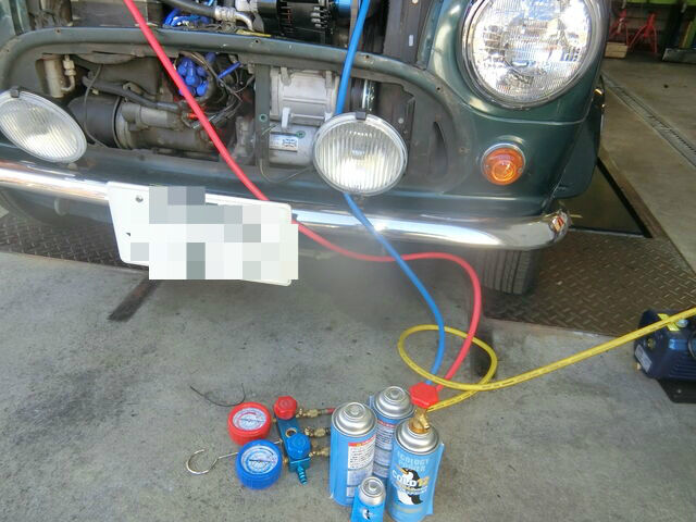 エアコンガスチャージのために暖気を実施。