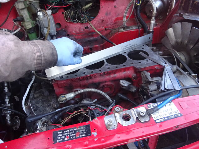 ヘッドとエンジンブロックの歪みがないかを確認したところ