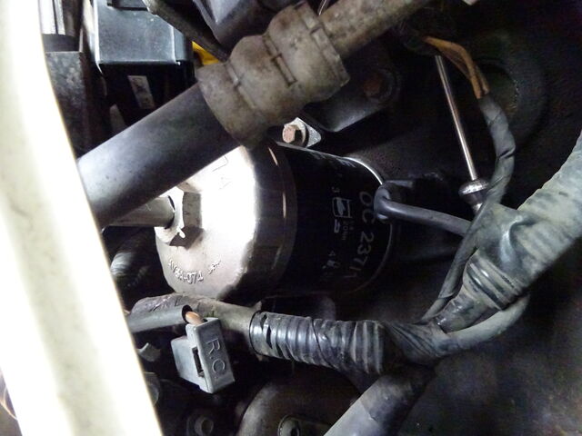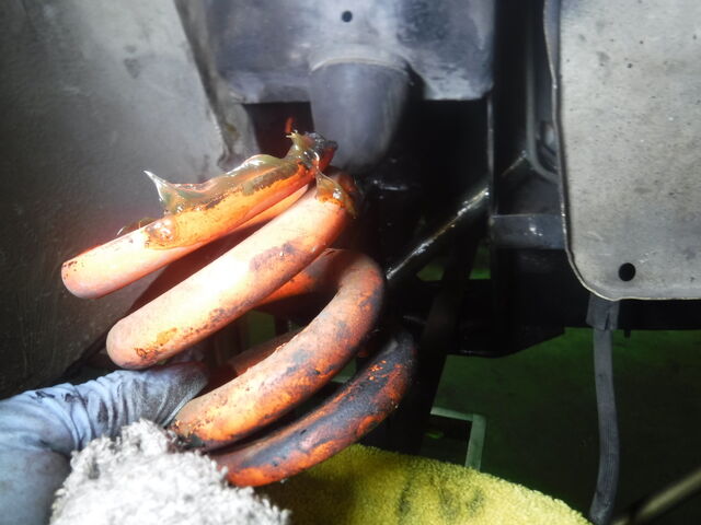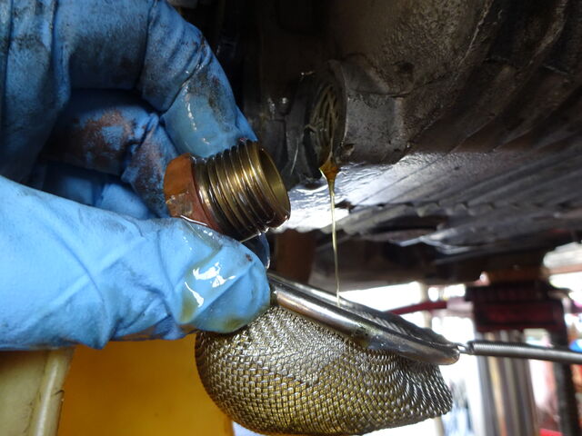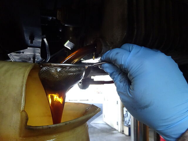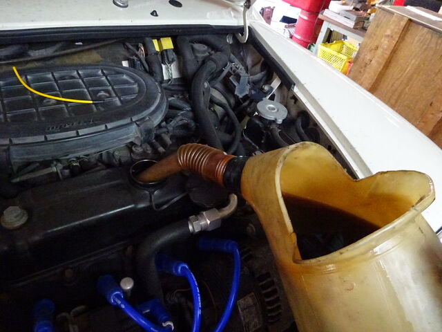 300km位しか走っていないので再利用出来るようにジョッキで受けます。