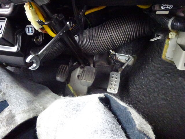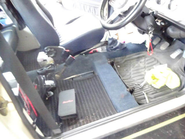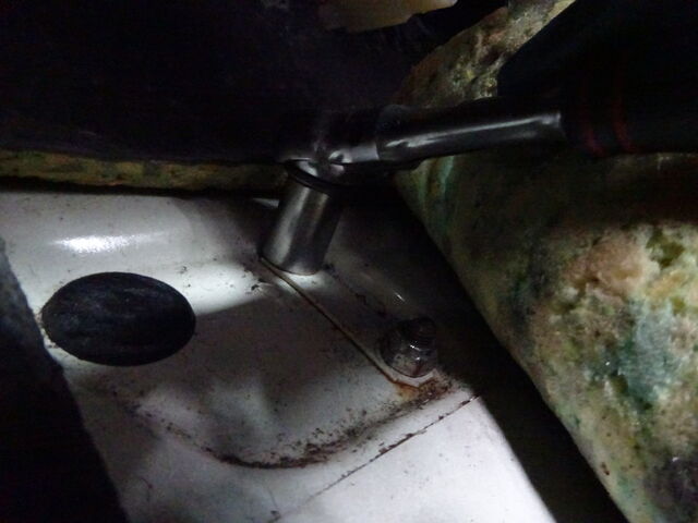 車内に入ってフロアカーペット剥がしその下の方のナット緩めます。