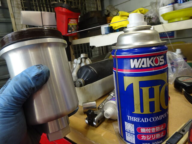 カジリ防止にスレッドコンパウンド噴いて締めます。