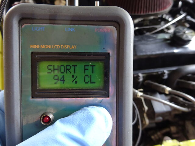 下 SHORT FT - Short Term Fuel Trimの略でECUの学習項目の短期的なフィードバック制御の状態を表示。