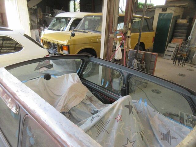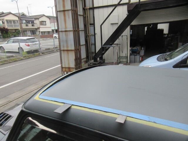 カーボンルーフを貼り付ける部分は塗料を向いて鉄板を出しておきます