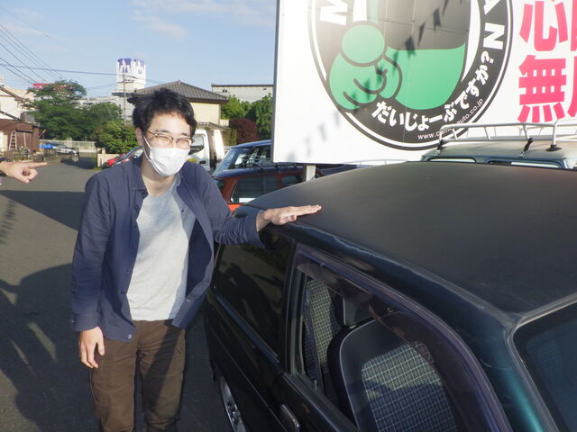「代車が既にカーボンっぽいルーフのミラジーノなのがウケるー」