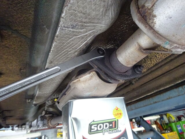 センターマフラーを付けるためにはサブフレームにブラケットを取り付けなければいけません。