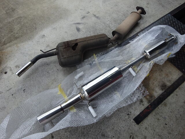 そのまま横にデルタンステンレスセンターマフラーを置いて新旧交代の儀。