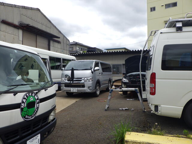 到着。。。 工場にはボディカットなどの改造される車がところ狭しと並んでます。。。
