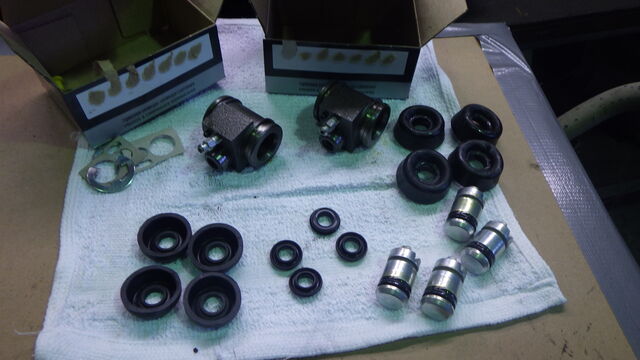 リアドラムブレーキ、ホイルシリンダーを組み付けていきます。