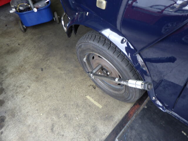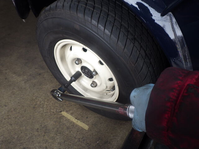 ホイールを取り付けて、トルクレンチでカチン!タイロッドの交換作業完了です。