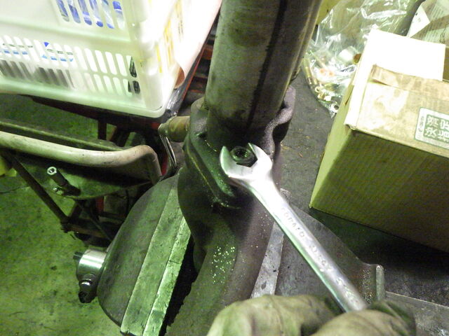 取り外そうと思いましたが、ナットが焼き付いてしまっているようですので、ナットを切って取り外しました。