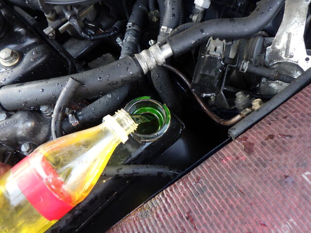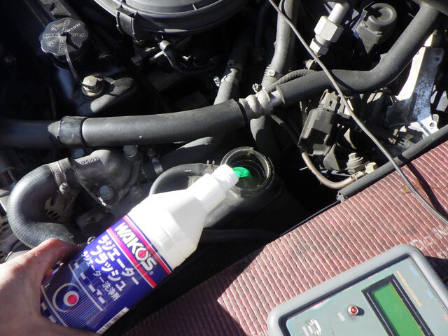ラジエターフラッシュを注入して、エンジンを始動します。