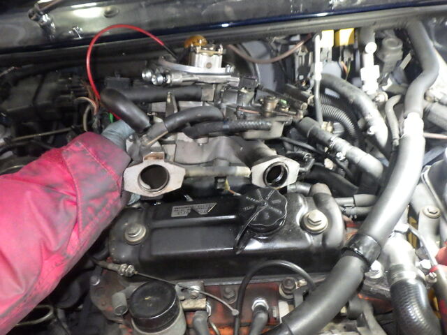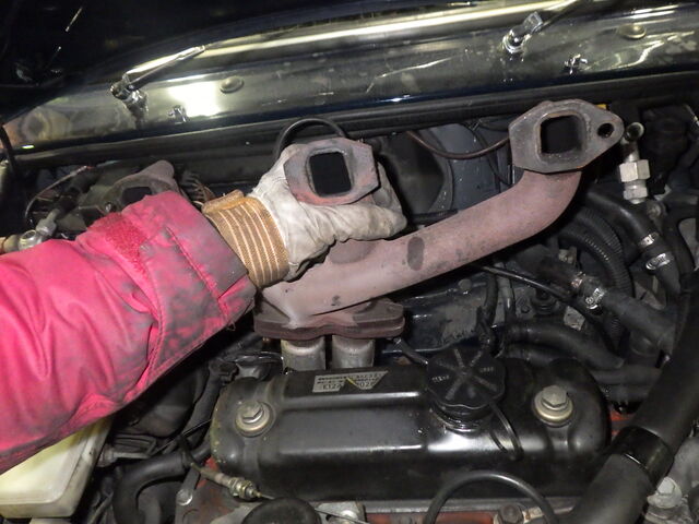 排気漏れ退治のため、ダウンパイプとマニホールドガスケットを交換します