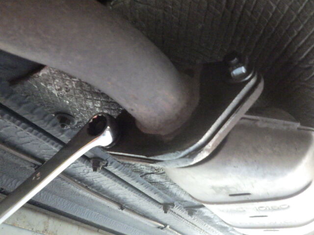 まずはダウンパイプを取り外すため、触媒とダウンパイプをつなげているナットから外します、、、