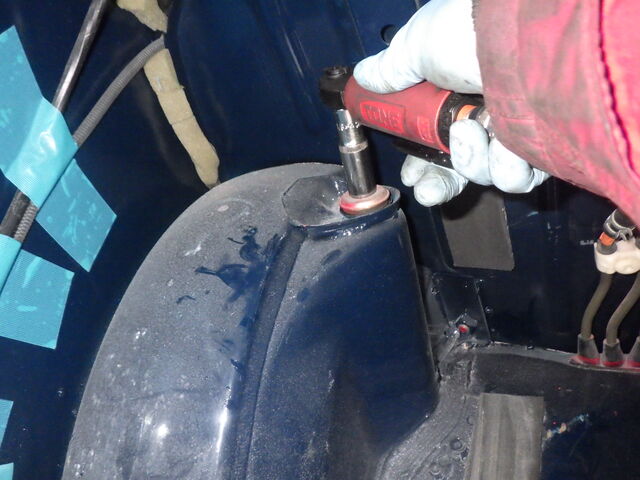 ハイローキットに交換するには、ショックアブソーバーを外さないと作業できませんが、そのショックを外すにはまず燃料タンクを外さないといけません。