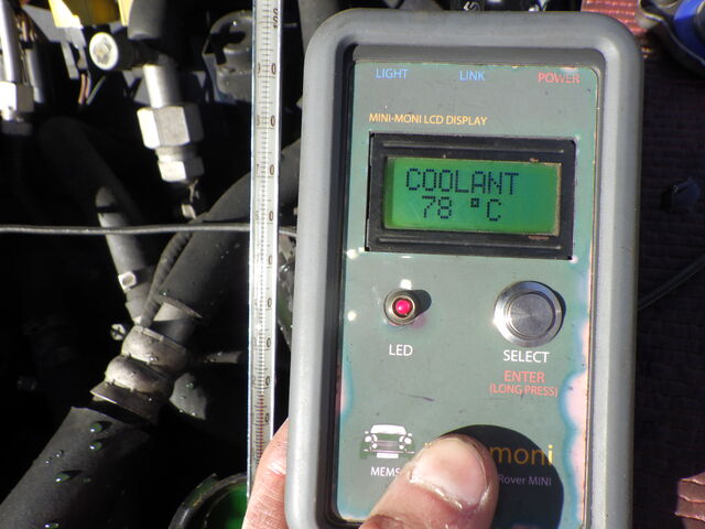 入庫時に確認した水温 109 度でも回らない電動ファン、原因を究明します。