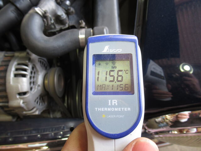 ラジエーターのアッパータンクを非接触温度計で測ると115.6℃