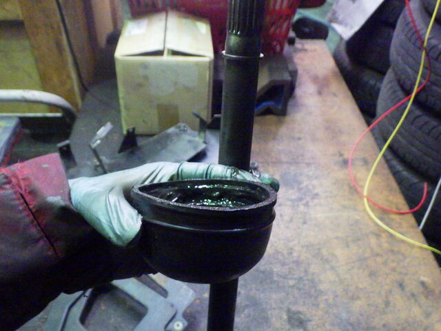 右のインナージョイントのブーツからはグリスとオイルがチョイ漏れ・・
