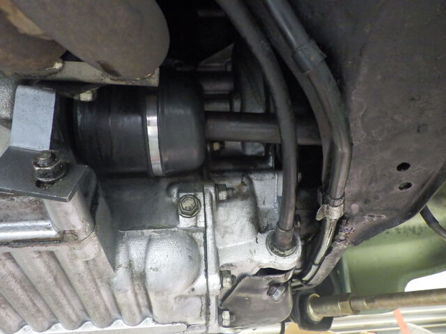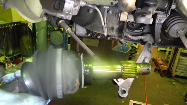 デフサイドオイルシールとキックダウンコントローラー交換のため、ドライブシャフトを抜きます。