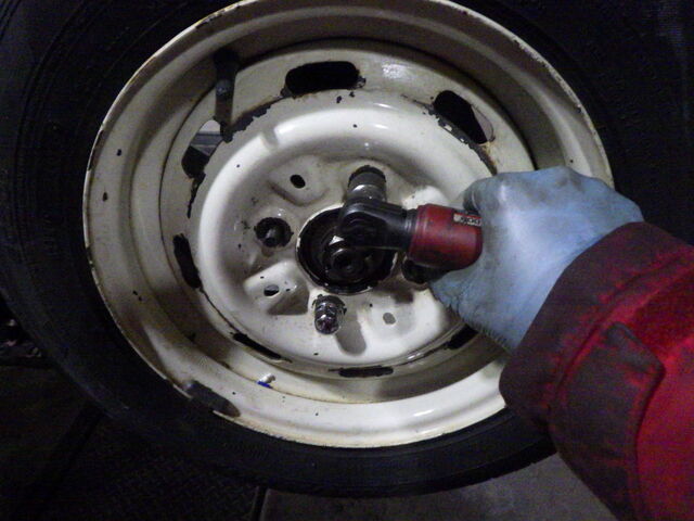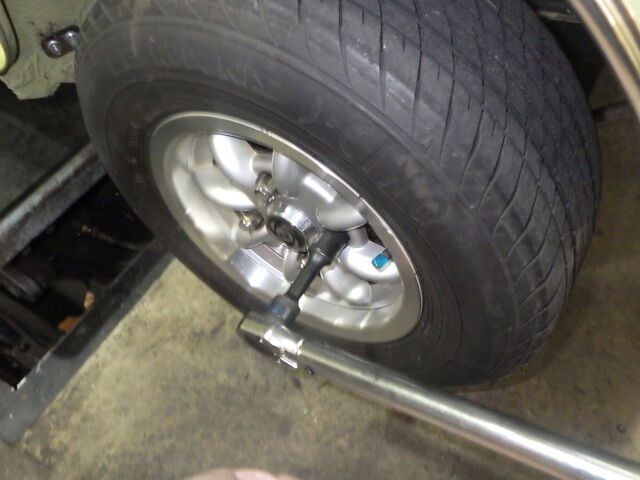 センターハブを取り付けるため仮のタイヤを組み付けて、トルクレンチでカチン!