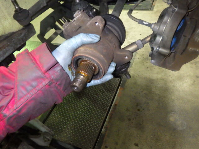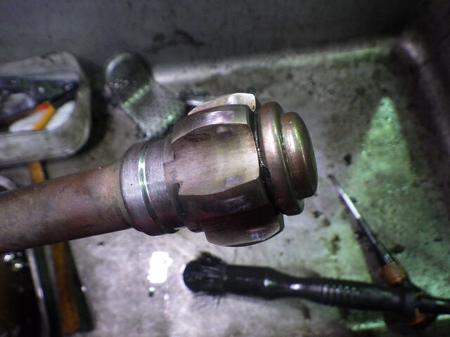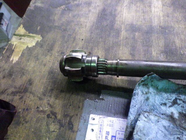 外したのでついでに点検、スイベルハブのベアリング部分に当たるドライブシャフトです。