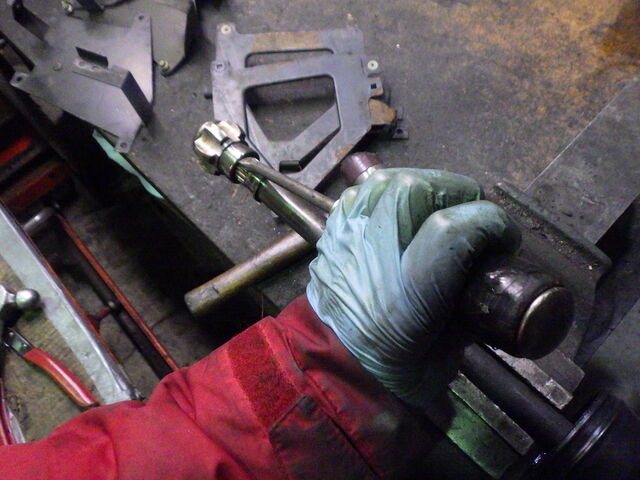 ドライブシャフトを抜く準備ができましたので抜いていきます。