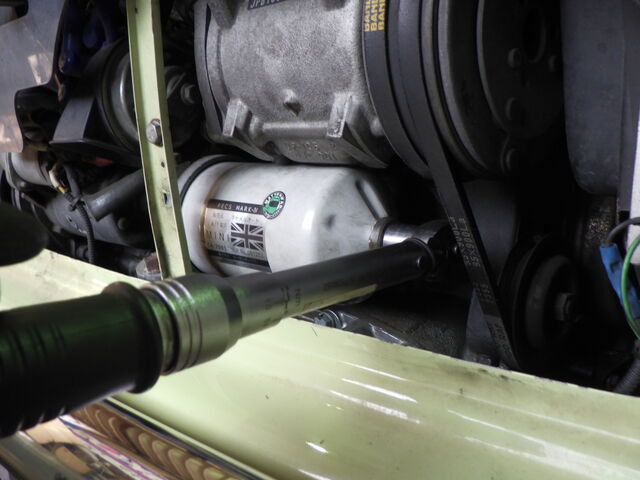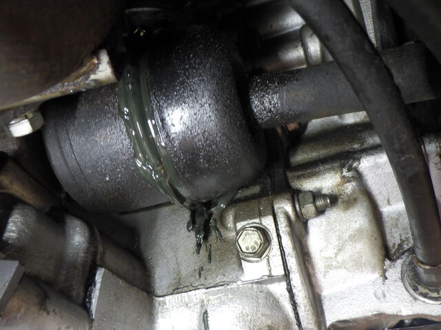 下から覗くと、フィルターパッキンからオイル滴が垂れてました。。。