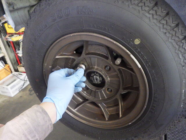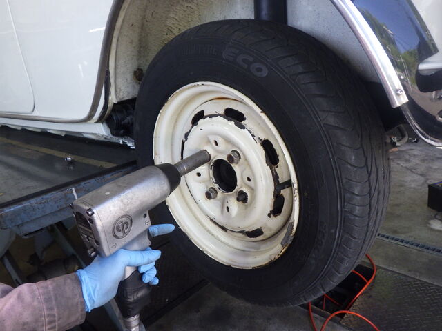 予備検が終わったので、面接スタイルのホイールなどをもとに戻していきます。