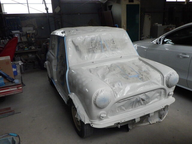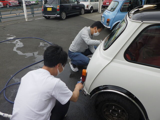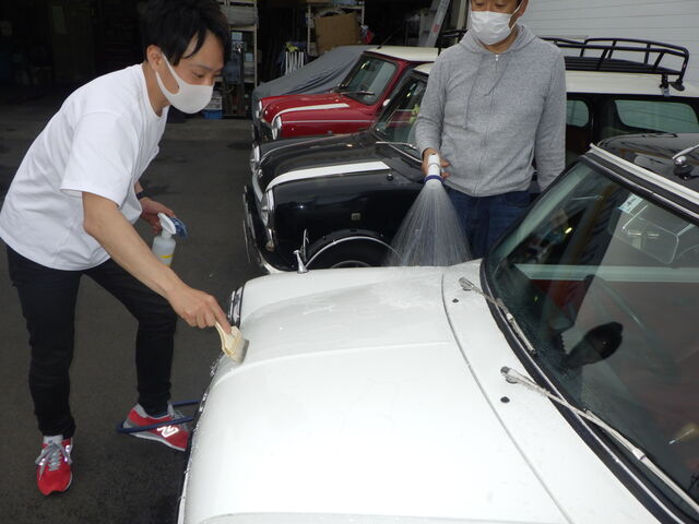 今回は前後ガラスは脱着しましたがオバフェンなどはマスキングテープで養生して仕上げですのでご了承ください。
